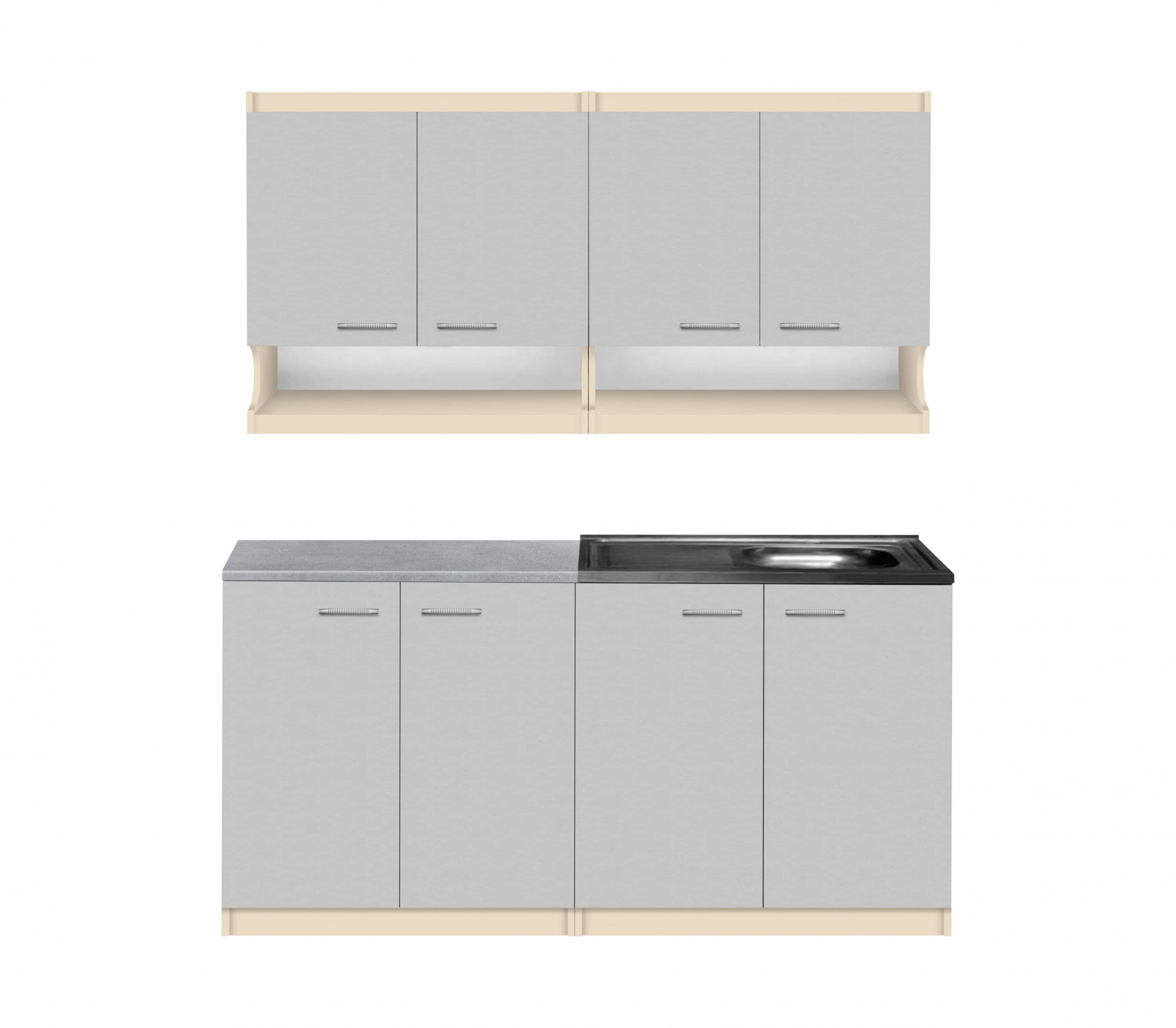 На фото представлено: корпус – ваніль, фасади – сірий, стільниця – бетон декада.
