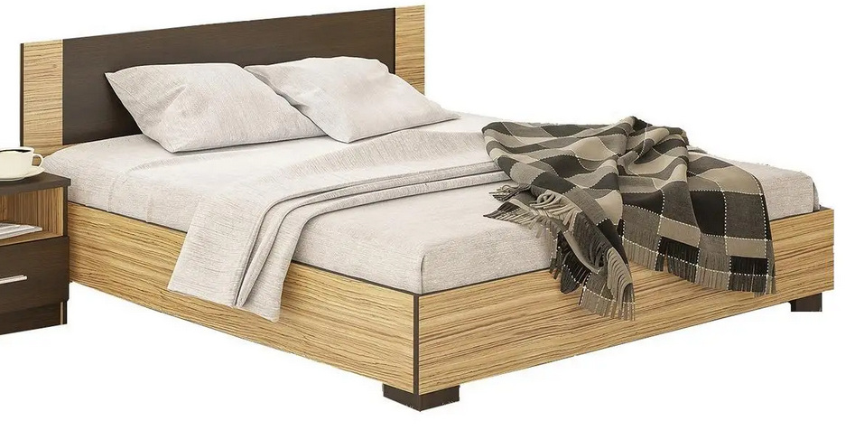 Двуспальная кровать Вероника МС 140х200 см дсп светлое дуб-самоа+венге с ламелями