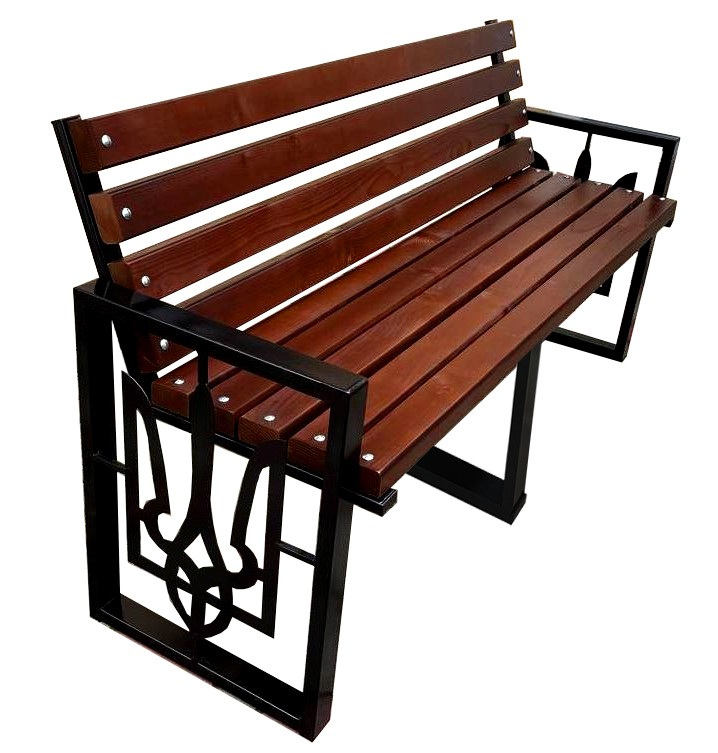 Стильный дизайн: привлекают внимание опоры скамейки, декорированные гербом. Эта изящная деталь делает изделие настоящим произведением искусства, которое станет стильным акцентом любого сада, террасы, парковой зоны или придомовой территории.