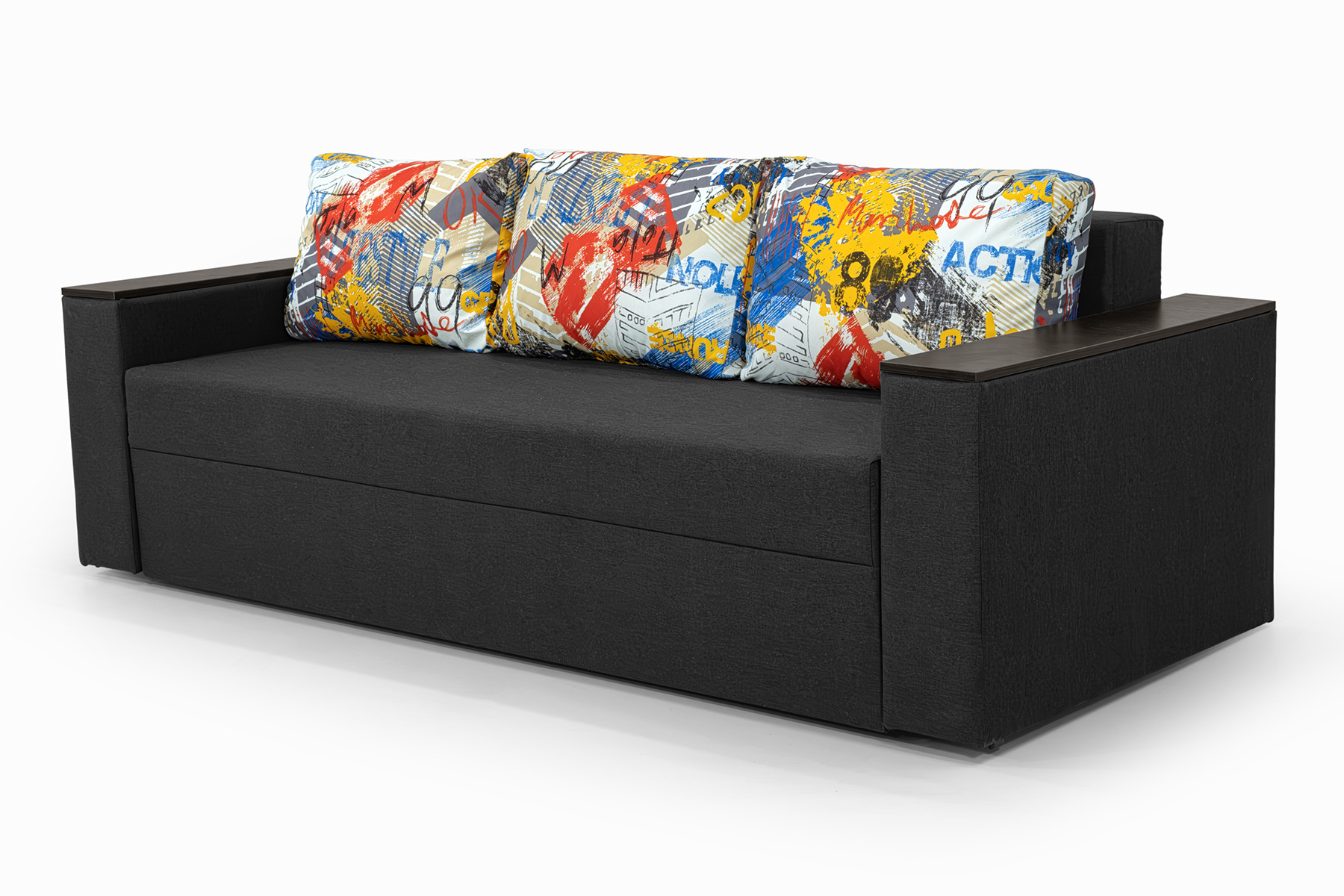 Зручний, стильний, надійний диван. При необхідності швидко перетворюється на двоспальне ліжко зі спальним місцем 195х145 см. Підлокітники дивану з вбудованими нішами. Підлокітники можна використовувати як полиці або журнальний столик.