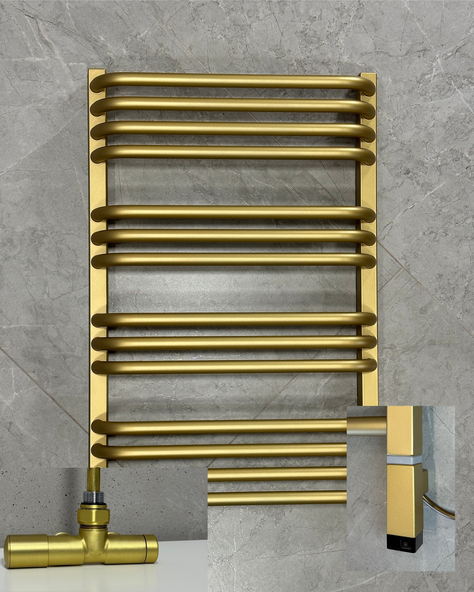 Комбинированная версия полотенцесушителя имеет в комплектации электрический тен и вентили для подключения к системе отопления.