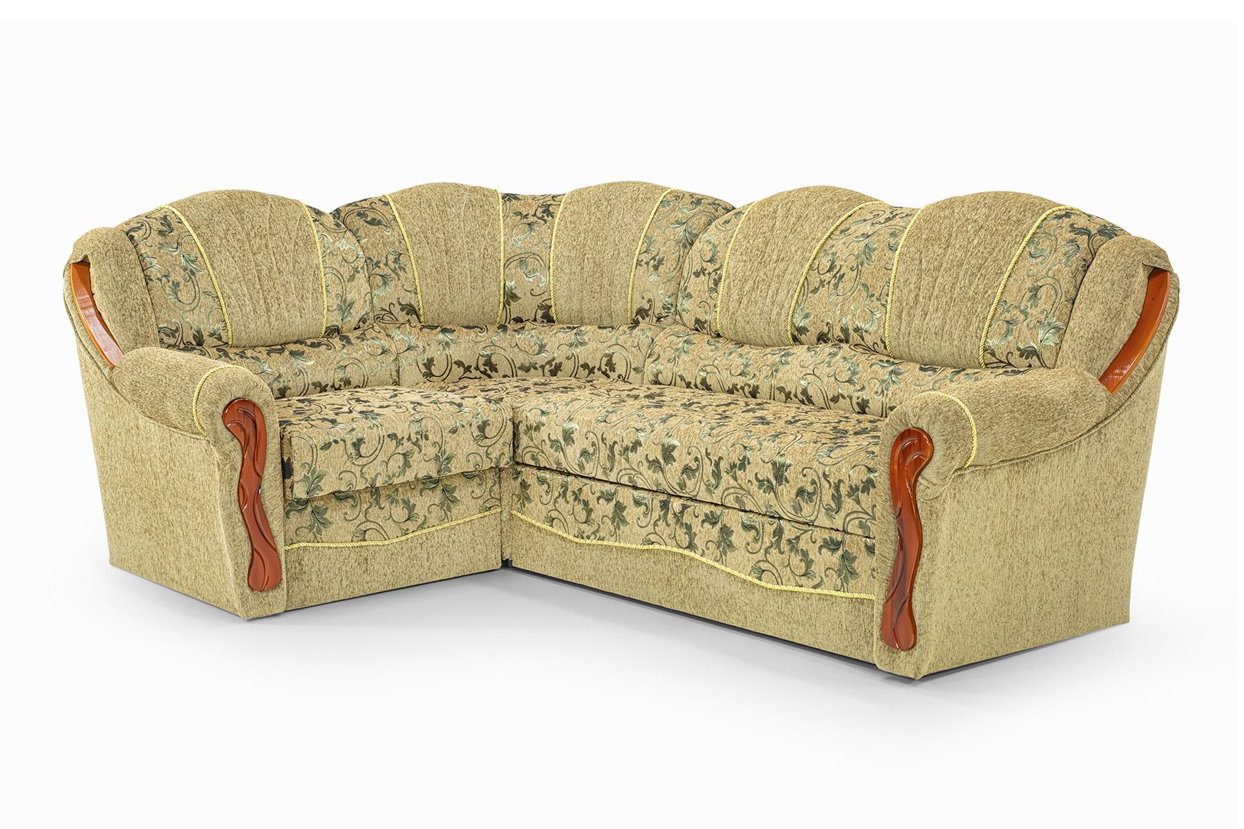 Елегантні дерев'яні накладки на підлокітниках і класичний дизайн внесуть у ваш інтер'єр атмосферу аристократизму та вишуканості. Завдяки зручному механізму "Дельфін", диван легко перетворюється в спальне місце, ідеальне для щоденного використання.
