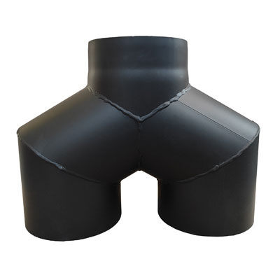 Характеристики товара Тройник-штаны на дымоход 120° Darco Ø 150+ мм черная сталь 2 мм