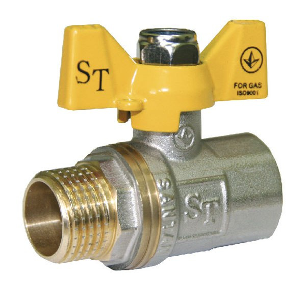 Кран шаровый для газа Santan Professional 607, 1" наружный - внутренний, желтая бабочка