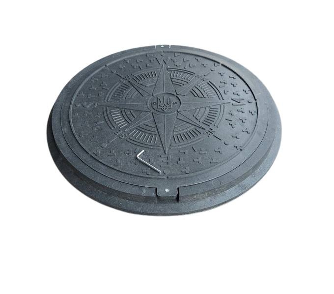 Описание Люк каналізаційний полімерпіщаний садовий "УКРАЇНА" 1 т чорний з замком Воюс
