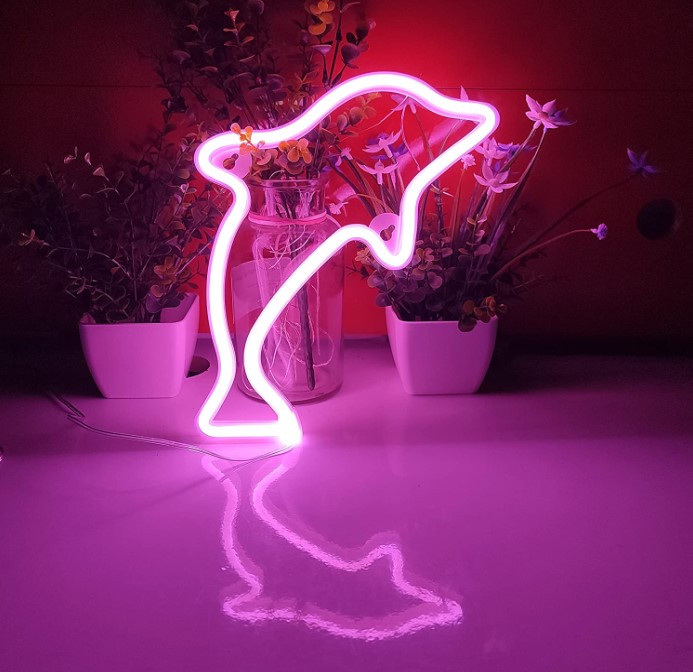 Описание Настінний неоновий світильник нічник Дельфін рожевий Angel