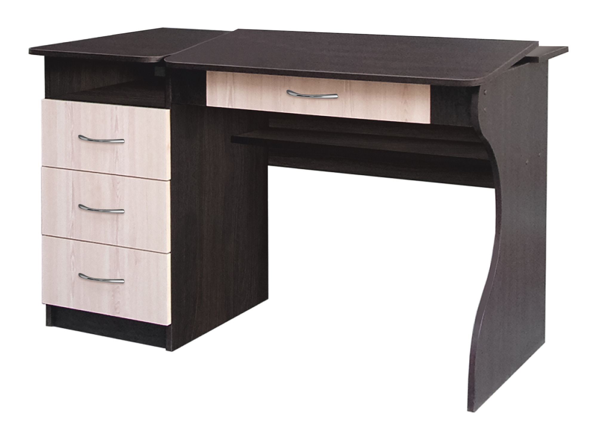 Стіл комп'ютерний Віраж (без надставки) МАКСІ-МЕБЛІ виготовляється в кольорах: дуб трюфель, венге магія, дуб молочний, яблуня локарна, дуб сонома, біла (гладка), біла (структура), ваніль, венге світле, бук, горіх лісовий, вільха, сіра (попіл) та їх поєднаннях (без доплати). При виготовленні з ДСП 2-3 кольорів - доплата 7%. Для замовлення виробу в кольорі, відмінному від вказаного в назві товару, просимо написати обраний Вами колір у будь-якому коментарі до замовлення. Термін виготовлення та доставки 10 днів. Передплата 30%.