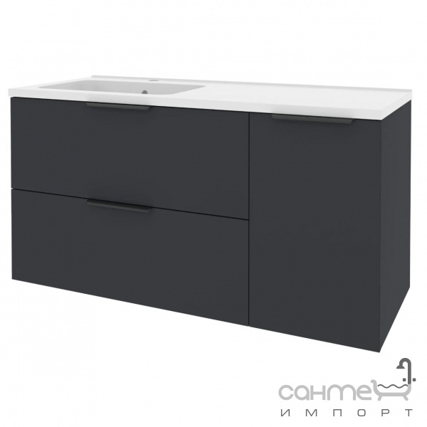 Подвесная тумба с раковиной и корзиной для белья Mirater Fest Родео 120 R антрацит, корзина слева