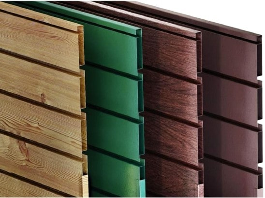 - Под дерево. Третий вариант покрытия производится из готового оцинкованного металла толщиной 0,45 мм с декоративным покрытием Printech, имитирующим дерево. Толщина слоя составляет 35 мк. Этот вариант идеален для тех, кто хочет сочетать прочность металла с теплым и уютным видом дерева. Цвета этого покрытия также ограничены.