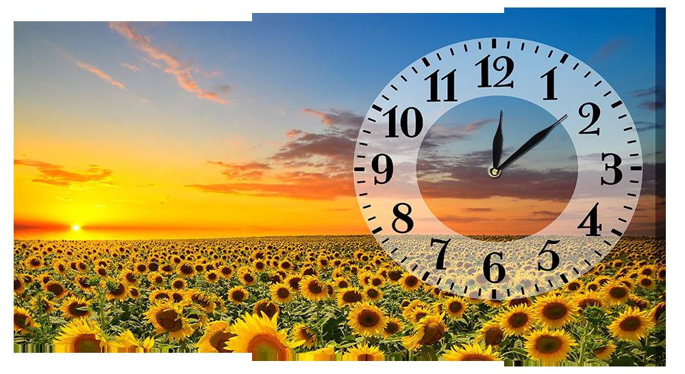 Характеристики товара Настінний годинник на полотні Декор Карпати Поле Соняшників (ViSP17654)