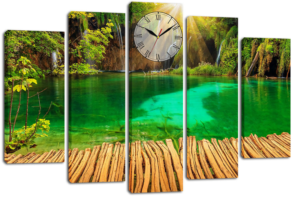 Розміри модулів: 32x80см – 1шт, 20x70см – 2шт, 20x60см – 2шт. Тихохідний механізм. Модульні картини з годинником – це стильне рішення для Вашого дизайну, яке миттєво перетворить навколишнє оточення! Модульний годинник - це кілька картин, які поєднуються тематичністю, сюжетною лінією або певною палітрою кольорів і доповнюються працюючим аксесуаром. Годинник-картина має якісний кварцовий механізм, який забезпечує тривалу ефективну роботу аксесуара з мінімальною секундною похибкою. Хочете купити годинник, але лякає дратівливий монотонний звук, який заважає відпочивати та міцно спати? Не хвилюйтеся, ці картини-годинники абсолютно безшумні! Ще однією приємною новиною для наших покупців, окрім доступної ціни від виробника, є річна гарантія на наш годинник.