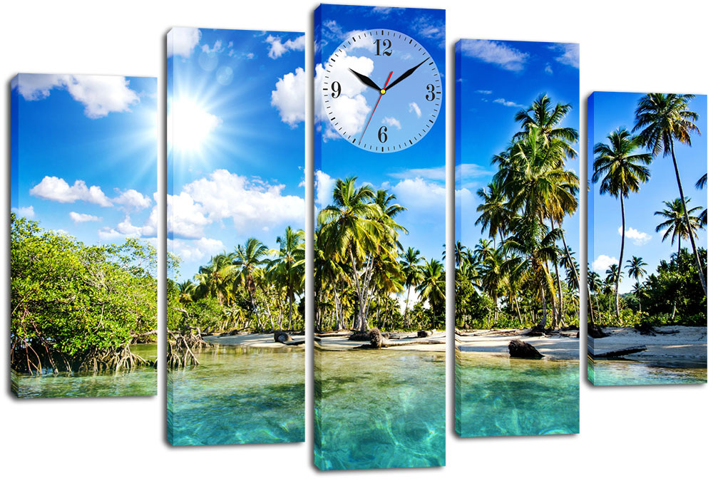 Розміри модулів: 32x80см – 1шт, 20x70см – 2шт, 20x60см – 2шт. Тихохідний механізм. Модульні картини з годинником – це стильне рішення для Вашого дизайну, яке миттєво перетворить навколишнє оточення! Модульний годинник - це кілька картин, які поєднуються тематичністю, сюжетною лінією або певною палітрою кольорів і доповнюються працюючим аксесуаром. Годинник-картина має якісний кварцовий механізм, який забезпечує тривалу ефективну роботу аксесуара з мінімальною секундною похибкою. Хочете купити годинник, але лякає дратівливий монотонний звук, який заважає відпочивати та міцно спати? Не хвилюйтеся, ці картини-годинники абсолютно безшумні! Ще однією приємною новиною для наших покупців, окрім доступної ціни від виробника, є річна гарантія на наш годинник.