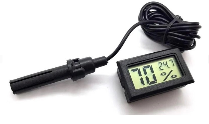 Цифровий термометр з гігрометром з виносним датчиком 1.5 м та ЖК дисплеєм LCD -50 ~ 70° C градусник+гігрометр Чорний