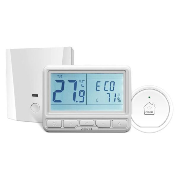 Бездротовий термостат Poer PTC16 з терморегулятором для теплої підлоги, електрокотла або конвектора (100404)