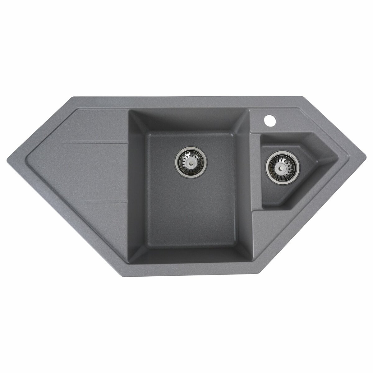 Гранитная мойка для кухни Platinum 9950 PANDORA матовая трапециевидная, серая муссон