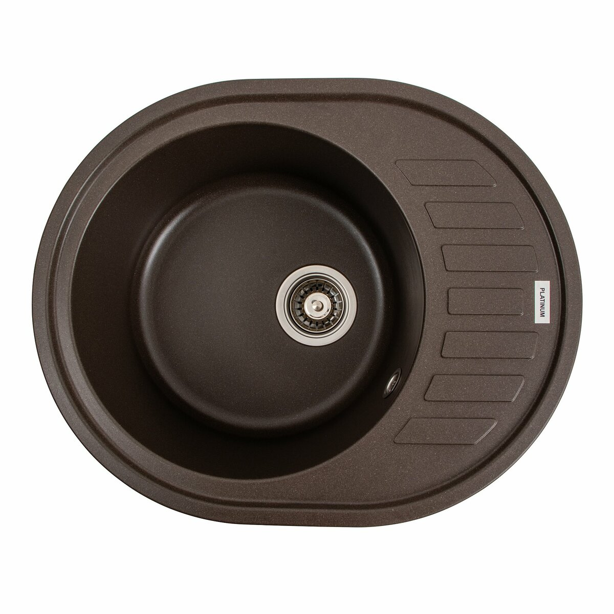Гранитная мойка для кухни Platinum 6250 SOUL матовая овальная, с крылом, темная скала