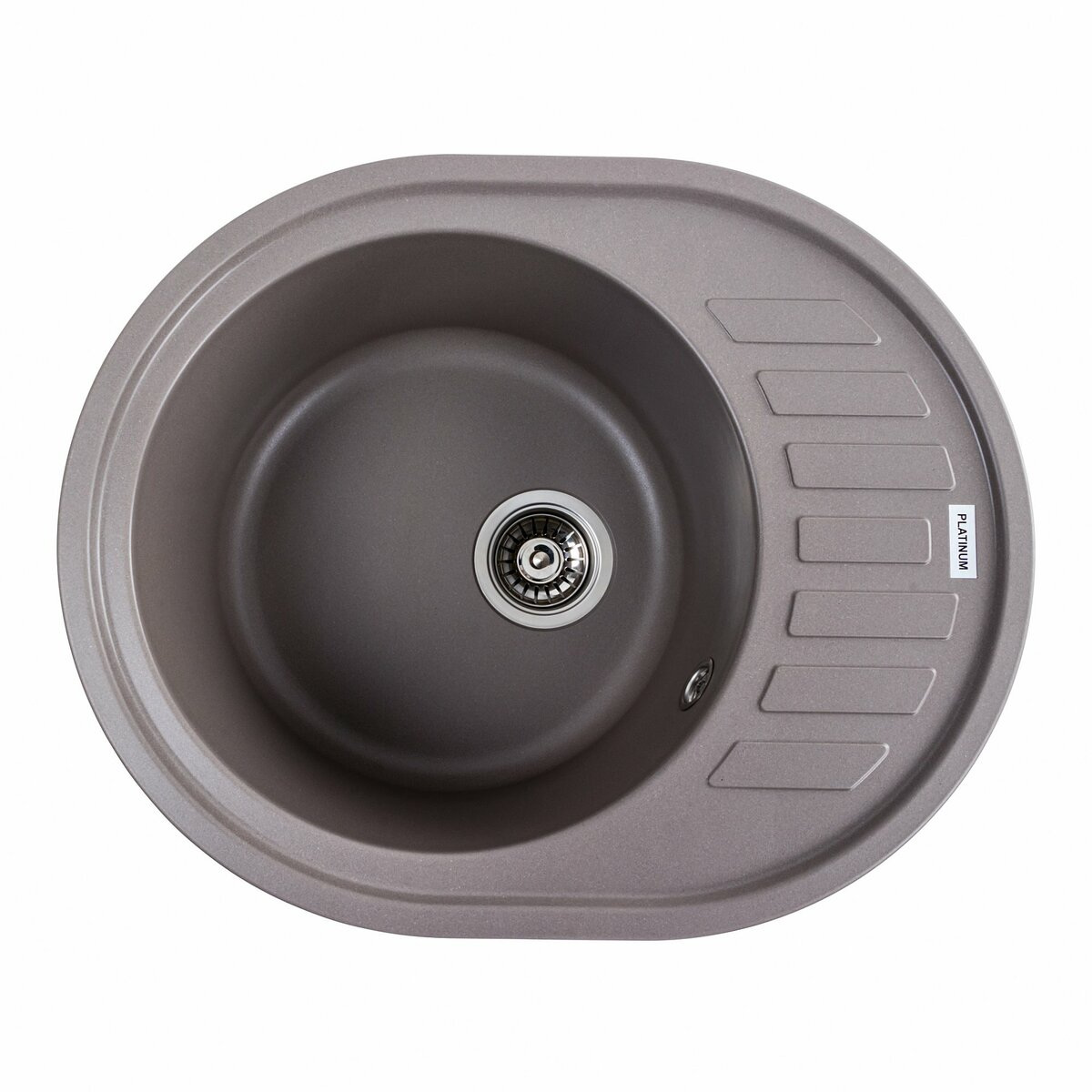Гранитная мойка для кухни Platinum 6250 SOUL матовая овальная, с крылом, темная скала 3647 грн/шт Купить