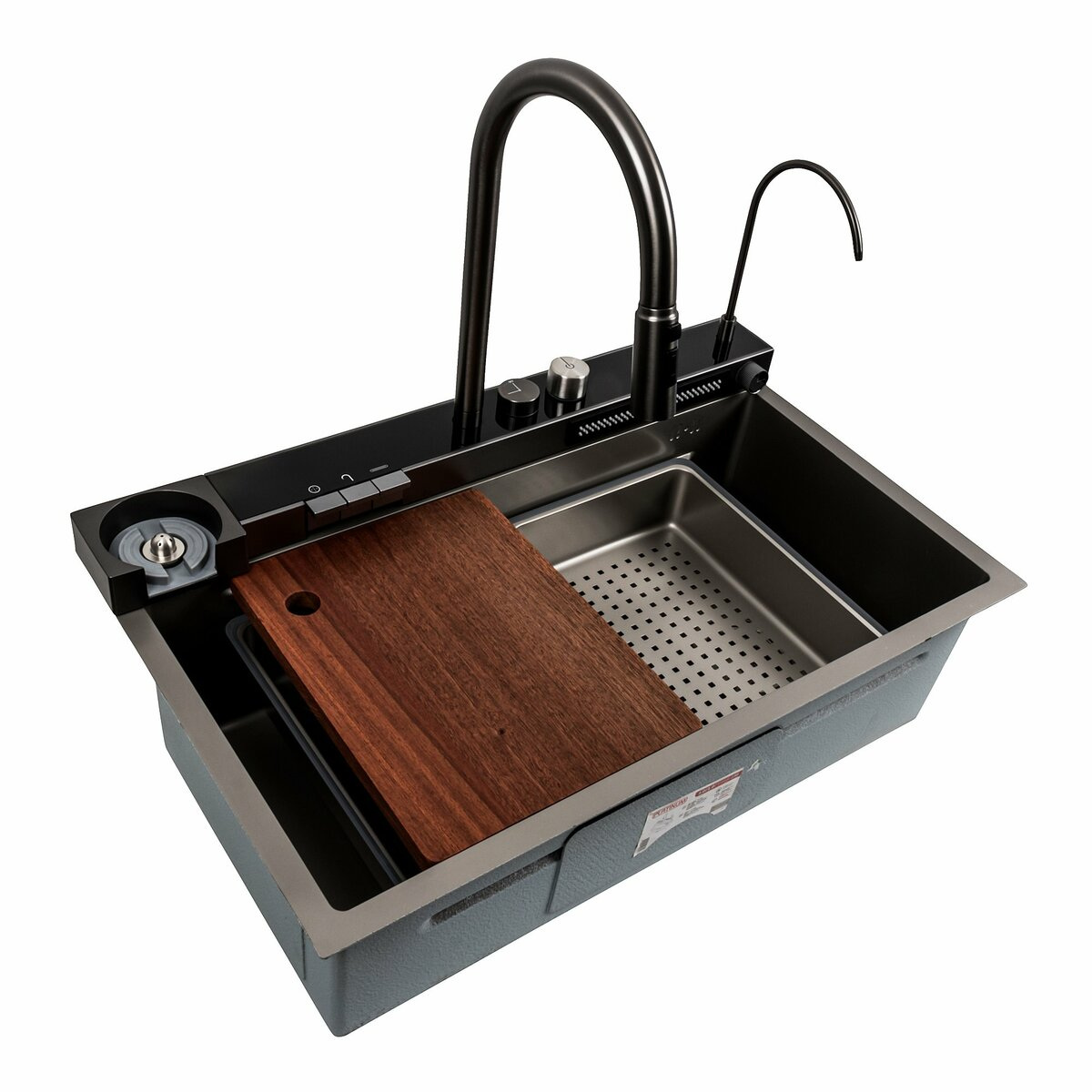 Многофункциональная мойка Platinum Handmade "Водопад" PVD 75х46D серая