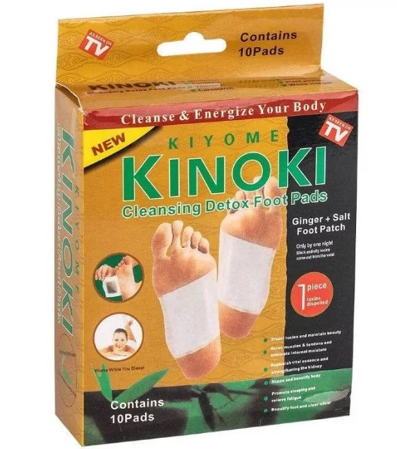 Пластир для детоксикації Kiyome Kinoki 10 шт/Детокс-пластирі для виведення токсинів Пластир на стопи для чищення лімфи, виведення токсинів KINOKI. Застосування пластиру стимулює циркуляцію крові та лімфи в організмі людини. Через рефлекторні зони на стопах пластир починає поступово «витягувати» токсини, що накопичилися в організмі. Регулярне застосування пластиру сприяє активному виділенню токсинів з організму, служить активізації кровообігу та прочистки каналів «цзинло», регулює діяльність залоз внутрішньої секреції, сприяє очищенню шкіри, покращує колір обличчя, усуває шкірну пігментацію. Деяким людям достатньо провести один курс терапії – 5 днів. У деяких пластирі залишаються темними, з яскраво вираженою «витяжкою» можна помітити велику кількість темної та липкої рідини – токсини, навіть після 3-4 курсів. Після того як пластир наклеюється на стопи, компоненти, що містяться на основі соків дерев, починають витягувати накопичені в організмі токсини, таким чином, досягається детоксикаційний ефект. Спосіб застосування: Наклейте пластир перед сном, зніміть уранці після пробудження. Прикріплюйте пластир до стоп обох ніг, або до хворих місць (суглоб, рука, плече, спина, м'язи). Після використання протріть місце прикріплення пластиру вологою серветкою* Рекомендації до використання: Сприяє покращенню кровообігу, активізує клітини, покращує діяльність 5 органів-почуттів, шести органів (жовчного міхура, шлунка, тонкої та товстої кишки, сечового міхура) Позбавляє втоми в ногах, сприяє лікуванню хворих органів, зміцненню печінки* Усуває можливість появи пухлин, допомагає швидко заснути, покращує якість сну. Знімає запалення лімфатичної системи, виводить шлаки, сприяє поліпшенню роботи лімфатичної системи, підвищує імунітет, страждає на запори, зайву вагу, порушення нервової системи, курців, схильних до алкогольної залежності, людей, які ведуть малоактивний спосіб життя. Форма випуску: 5 пар в упаковці