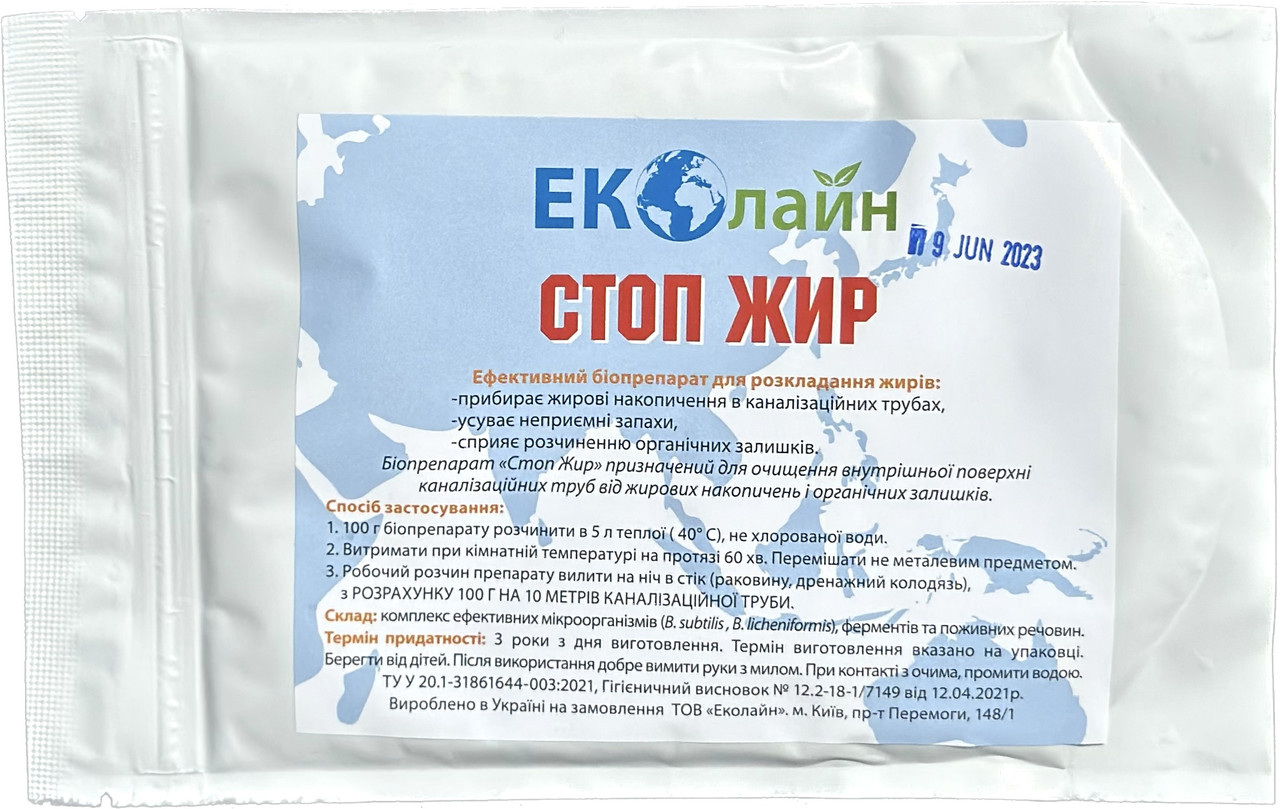 Характеристики товара Биопрепарат для утилизации жиров Эколайн Стоп Жир 100 г