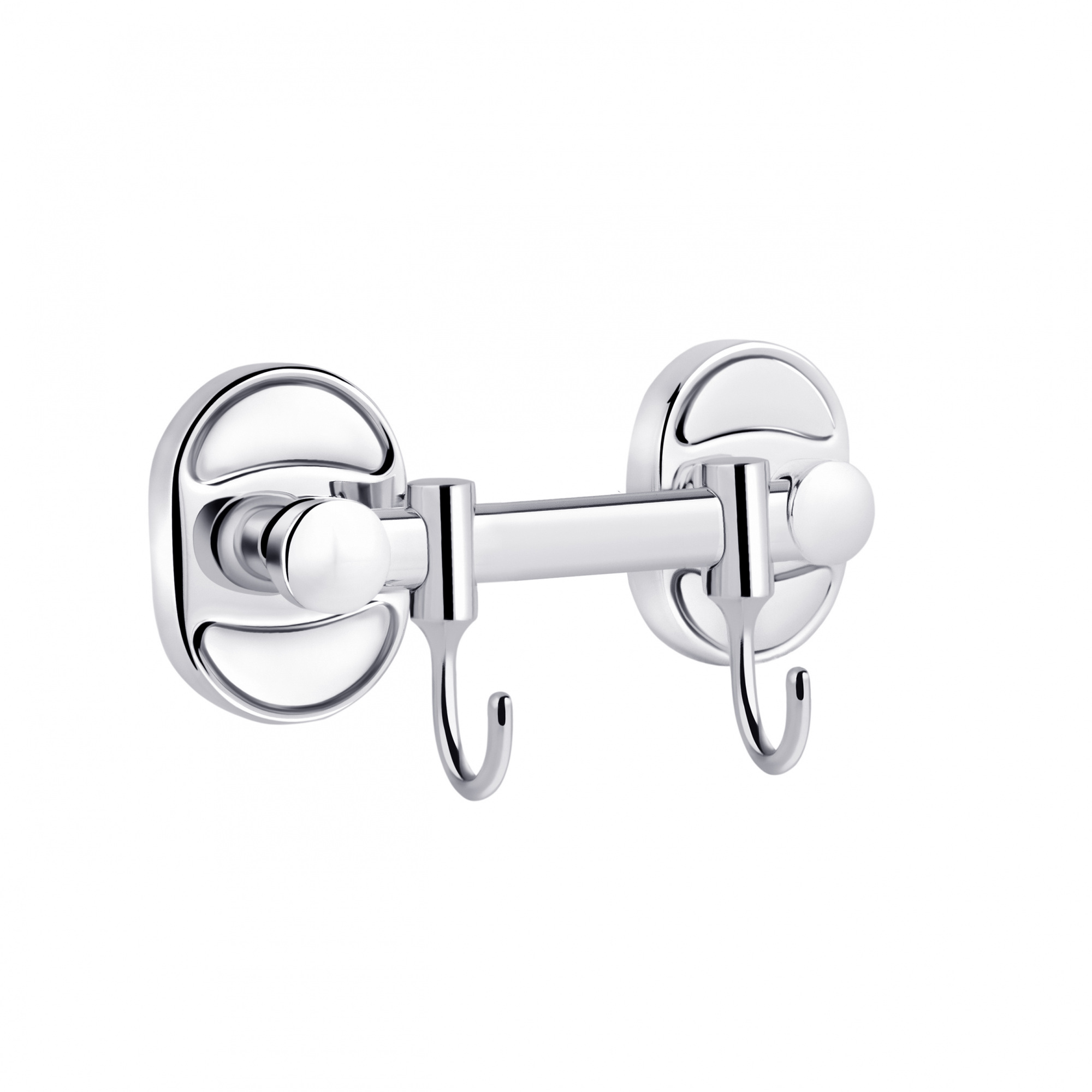 Держатель для полотенец и халатов Kroner KRM Elbe-ACC2914-2 изготовлен в форме стержня с двумя передвижными крючками на нем.