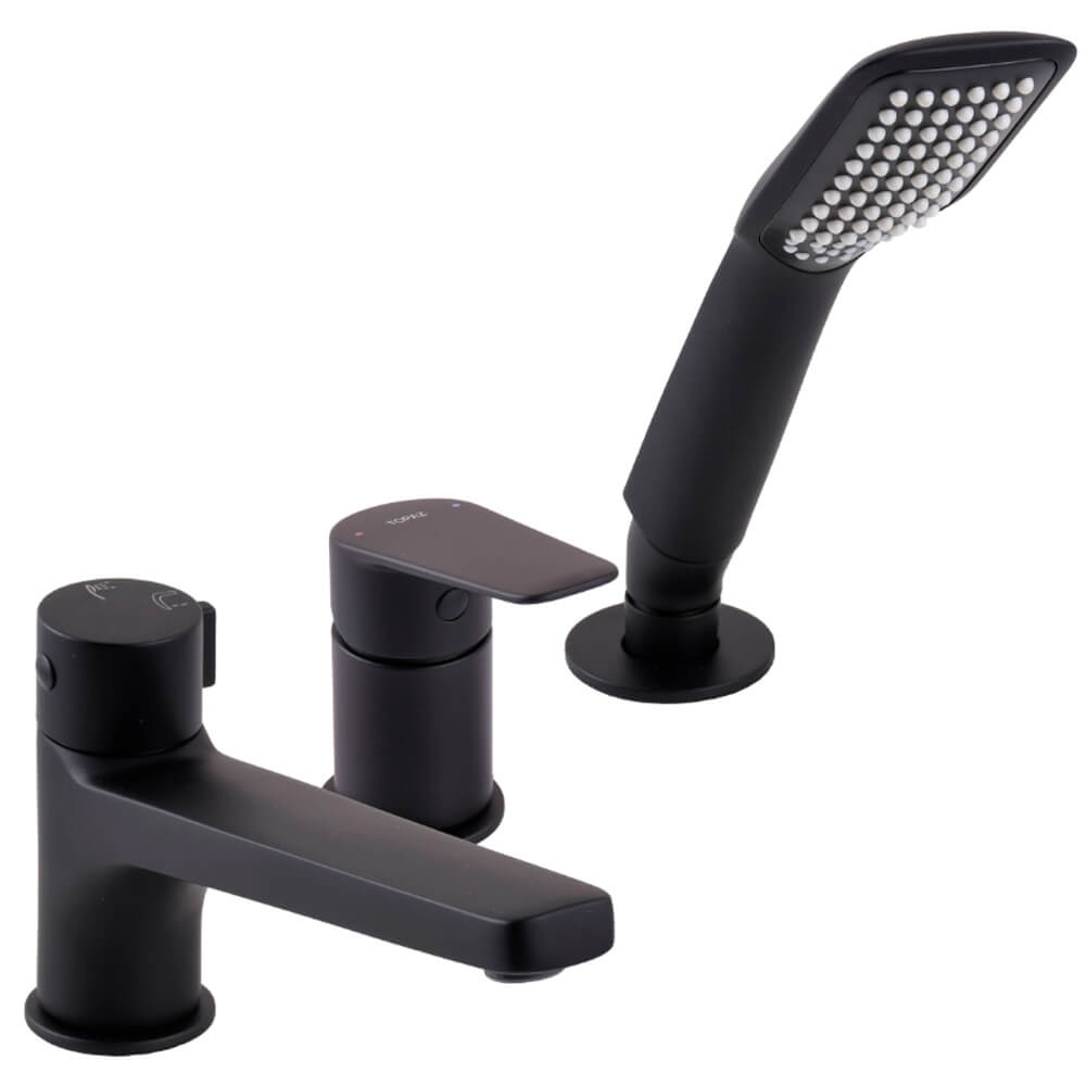 Змішувач для ванни Topaz Capri TCA-15111-H43-BL, на 3 виходи з лійкою, чорний матовий