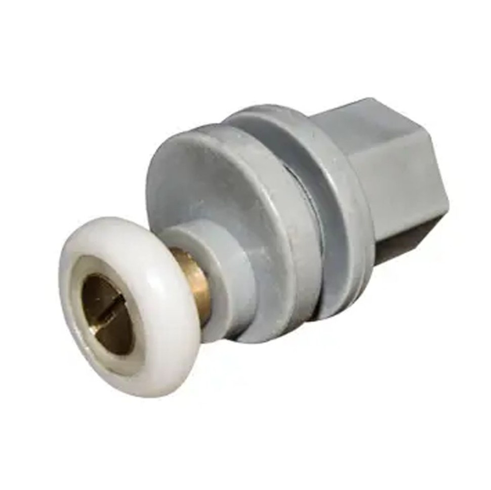 Ролик для душевых кабин и гидробоксов верхний и нижний, одинарный, пластиковый диаметром колеса 22 мм. Ролики имеет эксцентриковую систему регулировки, пластиковые посадочные детали, зажимается гайкой и закрывается колпачком. Колесо с подшипником завальцовывается на штоке. Материал штока – нержавеющая сталь или латунь. Колесо имеет подшипник с металлическими шайбами и втулками с водоотталкивающей смазкой. В душевой кабине с двумя дверями используется комплект из 8 роликов.