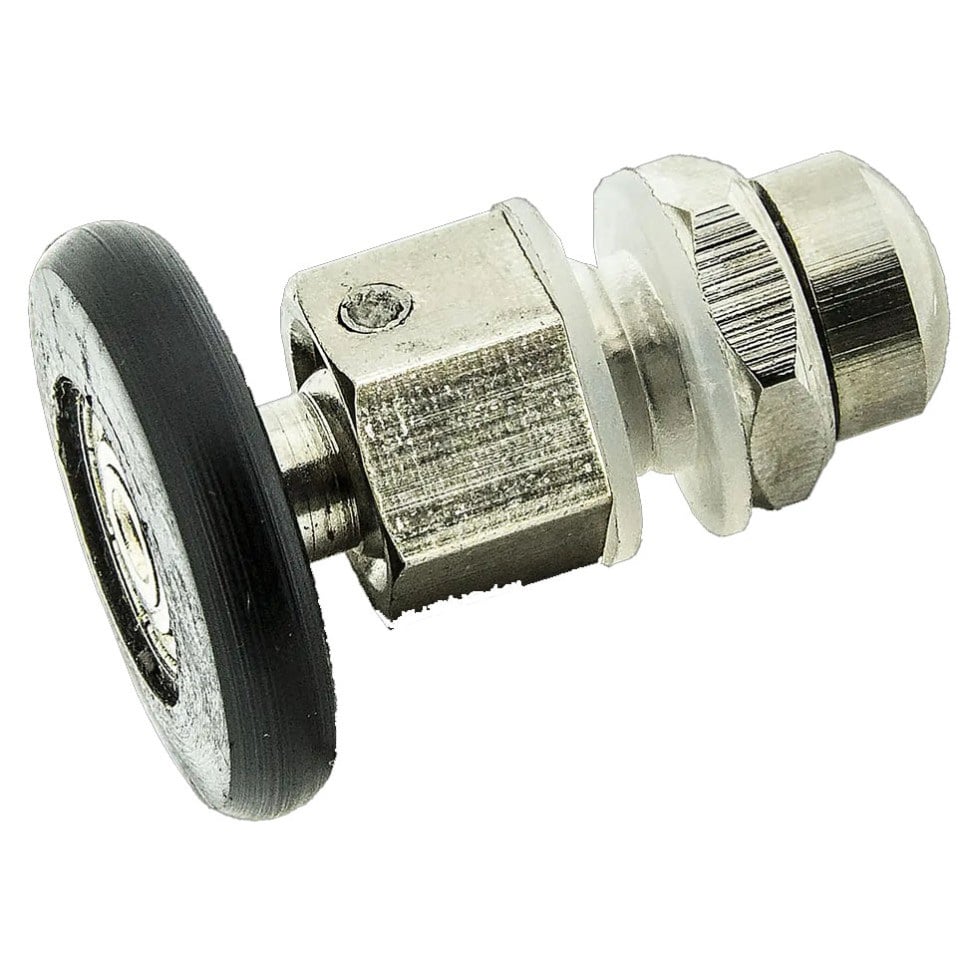 Ролики для душевых кабин и гидробоксов верхние и нижние, одинарные, металлические с диаметром колеса 23,26 мм. Ролик имеет эксцентриковую систему регулировки, пластиковые посадочные детали, зажимается гайкой. Колесо с подшипником завольцовывается на штоке. Материал штока- нержавеющая сталь или латунь. Колесо имеет подшипник с металлическими шайбами и втулками с водоотталкивающей смазкой. В душевой кабине с двумя дверьми используется комплект из 8-ми роликов. 4 шт. верхние и 4 шт. нижние одинаковые.