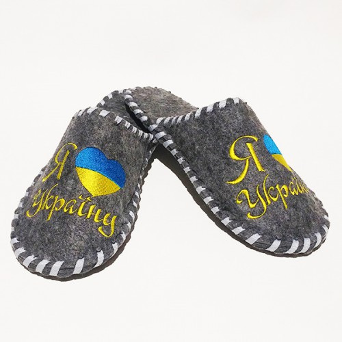 Тапочки для дома и бани войлочные Luxyart с вышивкой Я люблю Україну Серый (GA-08)