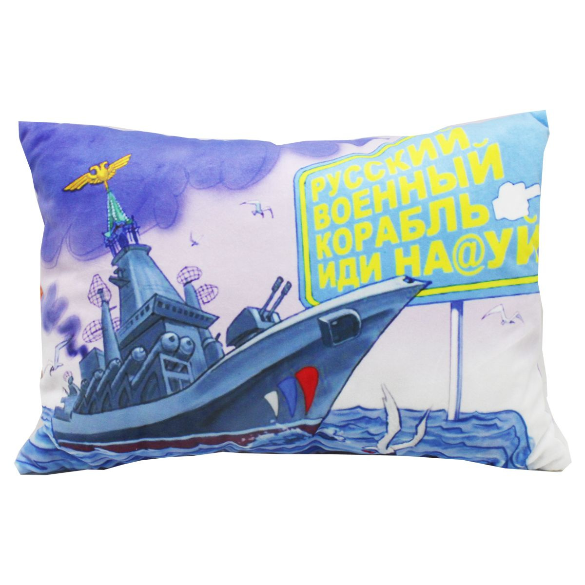 Подушка декоративная с принтом "Русский военный корабль, іди нах*й" Белый Кавун П000346