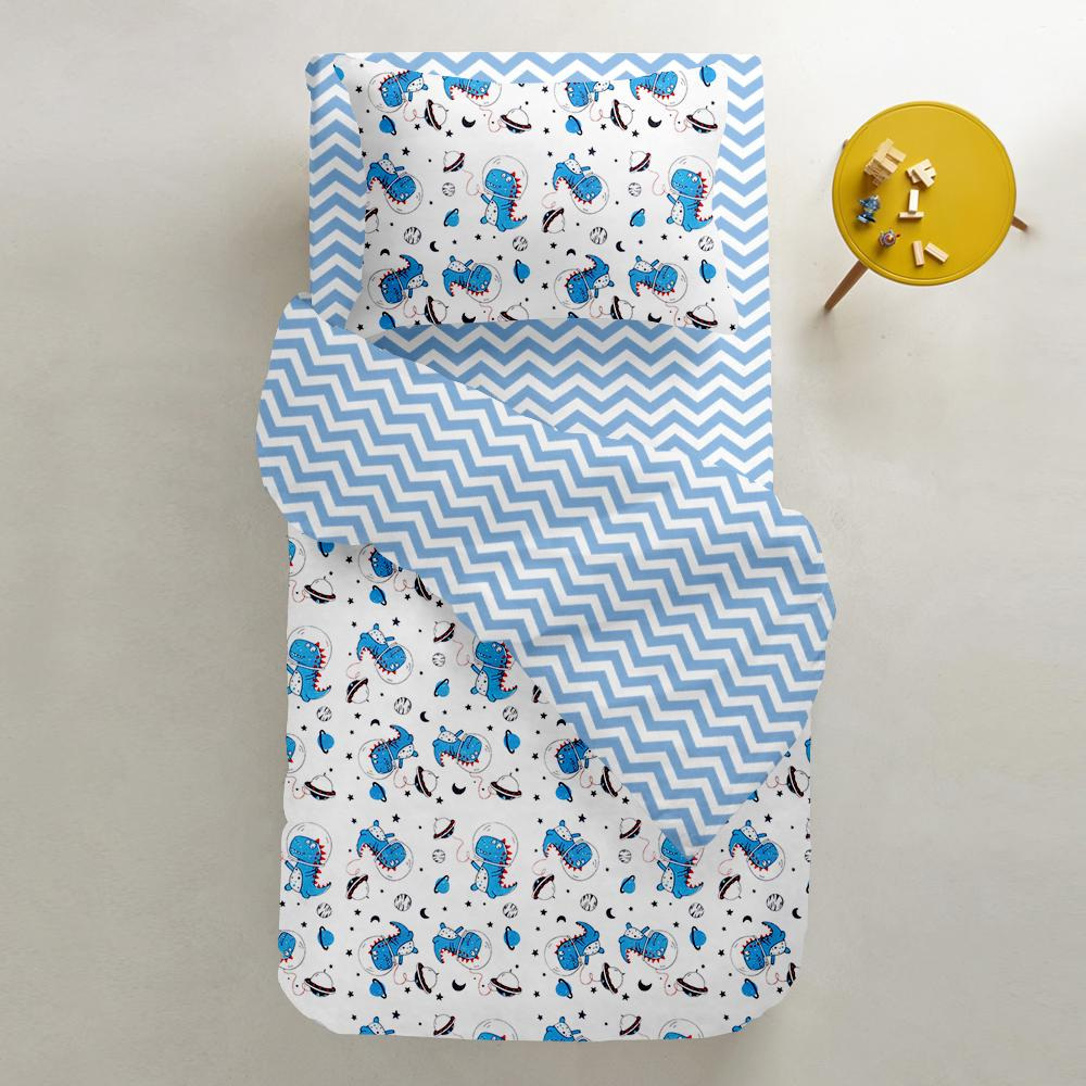 Детский пододеяльник Cosas DINO IN SPACE Ранфорс 110х140 см Голубой