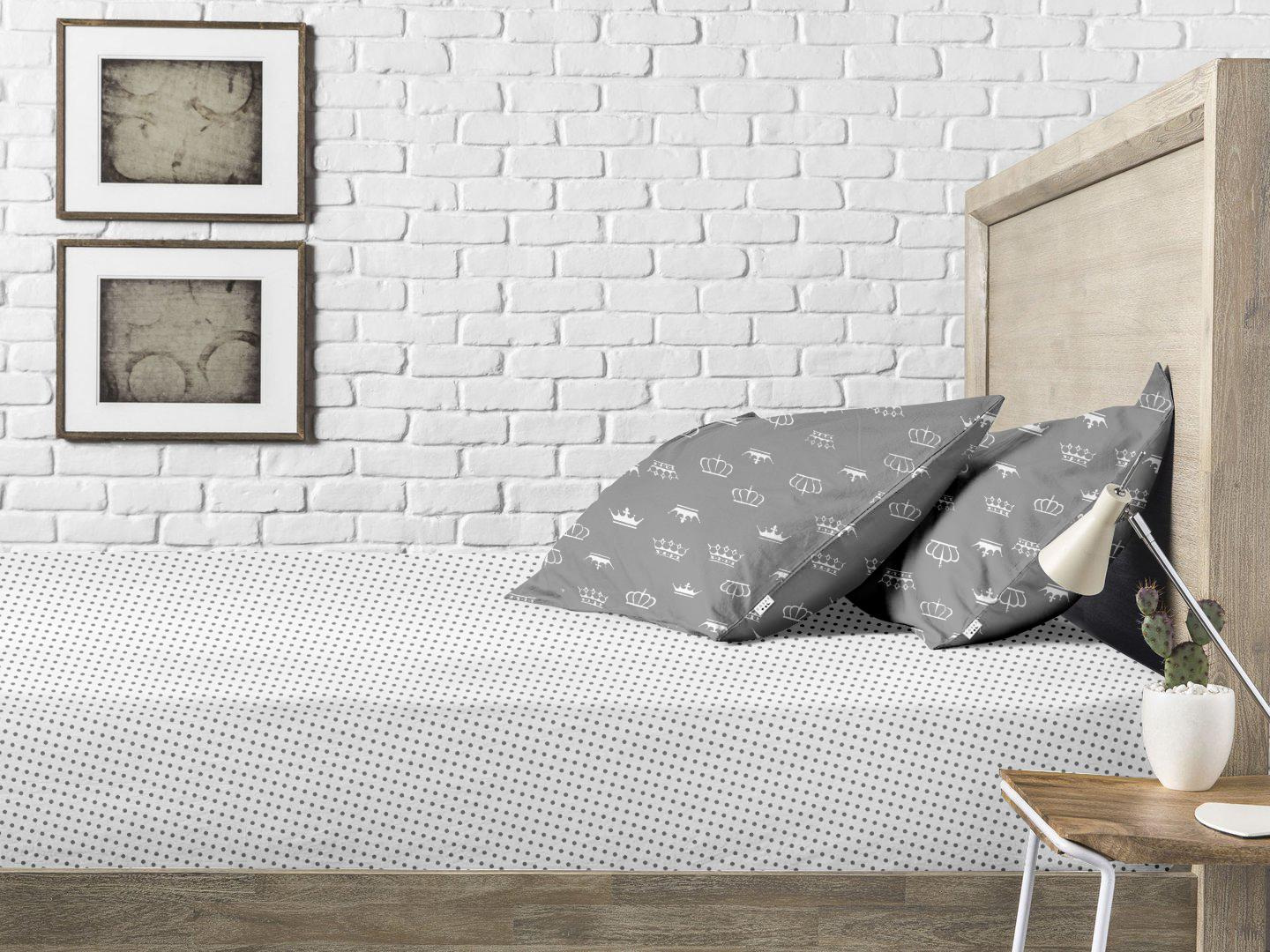 Описание Простынь на резинке Cosas GREY DOTS CS1 Ранфорс 180х200х20 см Белый