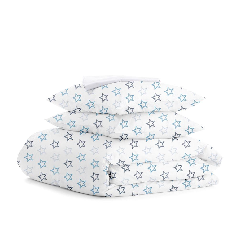 Евро постель с простыней на резинке White Stars Cosas Голубой 200х220 см