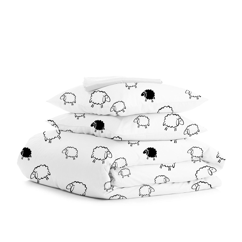 Полуторная постель с простыней на резинке Sheep Black CS4 Cosas черный 160х220 см Ахтырка
