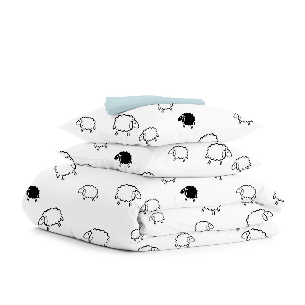 Комплект полуторного постельного белья Cosas SHEEP DARK BLACK Ранфорс 160х220 см Белый/Голубой