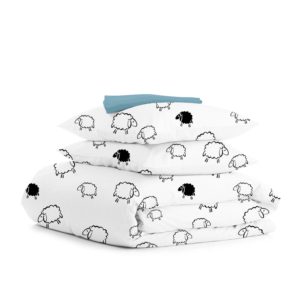 Описание Комплект полуторного постельного белья Cosas SHEEP DARK BLACK CS2 Ранфорс 160х220 см Белый/Голубой