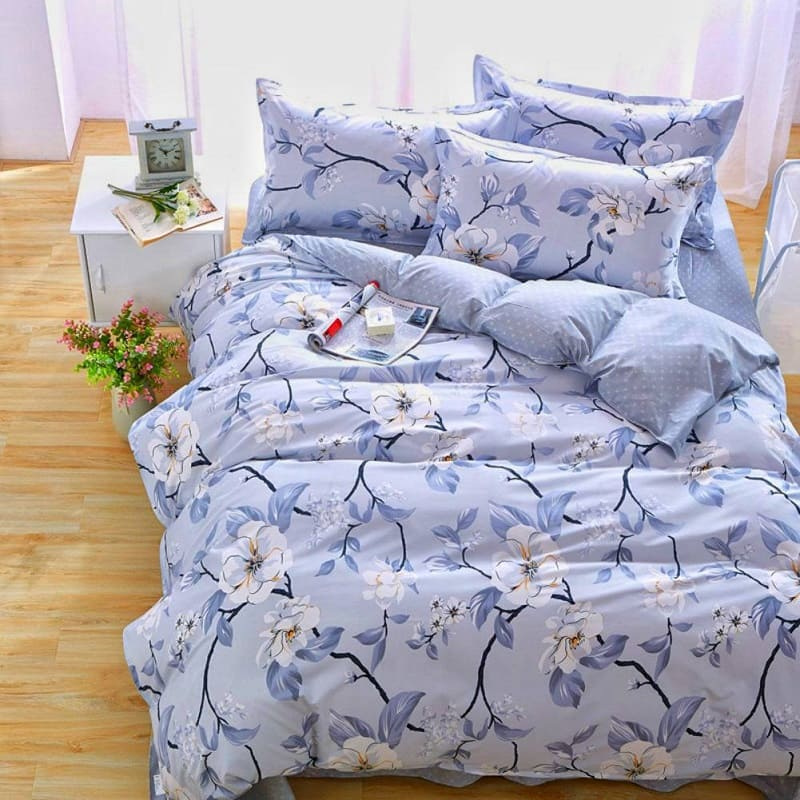 Постельное белье Кот Муркот Евро Лавандовый с ветками белой магнолии (VD_Зимова_магнолія_Є)