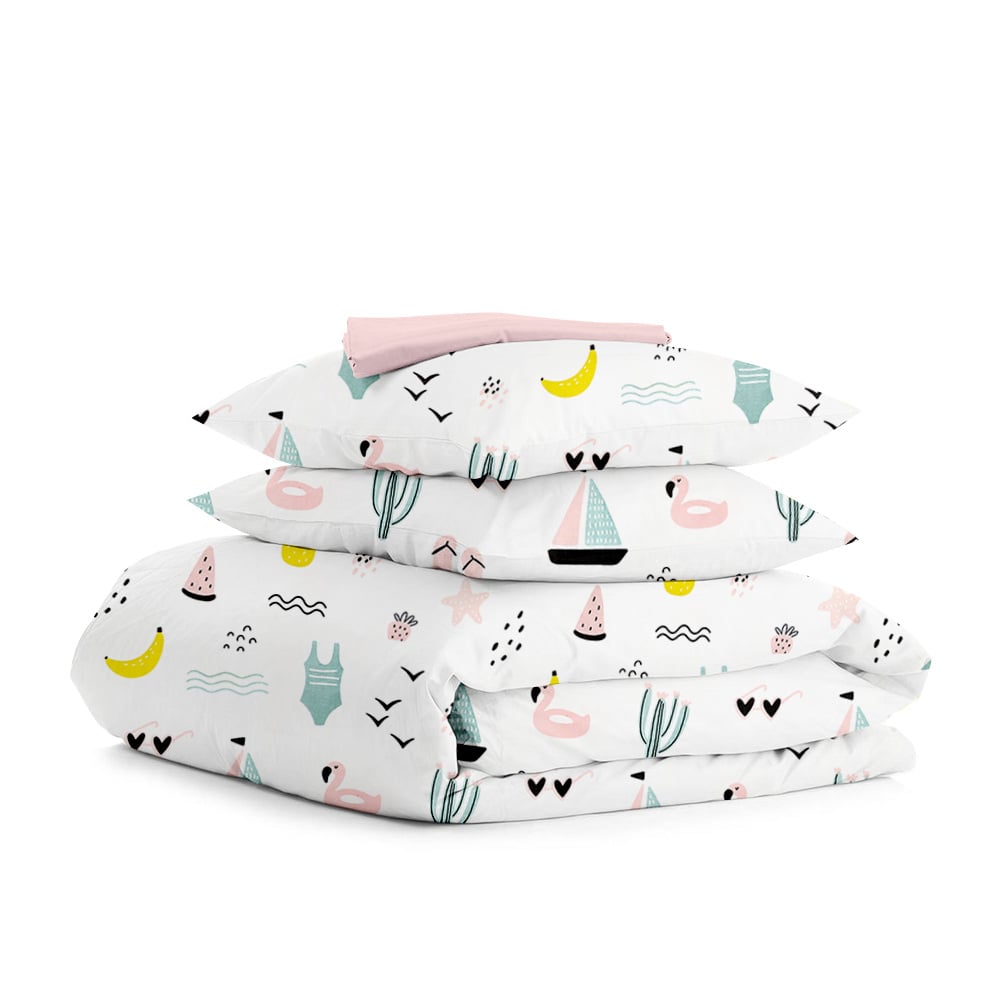Описание Полуторная постель с простыней на резинке Beach Rose Cosas Белый 160х220 см