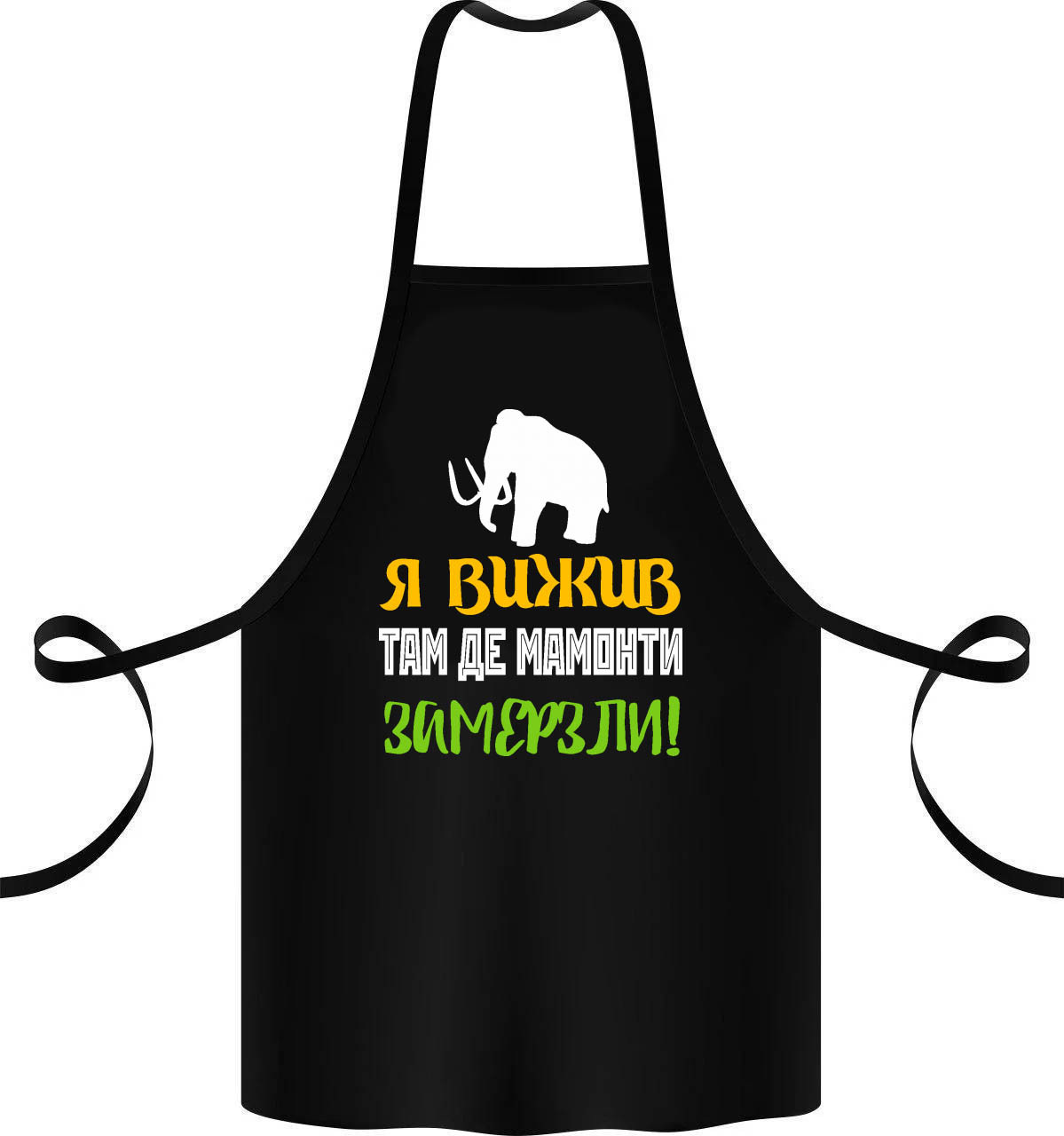Фартук с принтом "Я вижив там, де мамонти замерзли!" Приготовление пищи на кухне – это процесс, который может быть очень утомительным. Даже создавая оригинальные блюда можно со временем потерять ощущение новизны и свежести. Из-за этого творческий процесс часто превращается в обычную рутину, мешающую получать удовольствие от работы. Что поможет скрасить серые будни, оживит атмосферу радости и созидания? Фартук с принтом, оформленный в выбранном покупателем стиле используя вместо безликой, не вызывающей никаких эмоций кухонной одежды оригинальные вещи. Простыми и доступными по цене средствами внесите положительные коррективы в общее настроение и избавьтесь от навеваемой серостью скуки. Фартук габардиновый подходит как мужчинам так и женщинам. Имеет спереди три кармана, длинные завязки которые можно завязать как сзади так и спереди (70 см. каждая) Длина самого фартука (без учета завязки на шею) 84 см. Ширина фартука от завязки к завязке 68 см. Ширина лямки на шее 2 см. имеет 2 пуговки для регулировки лямки на шее. Ткань - габардин. Габардин - синтетическое полотно, характеристики которого определяют его уникальность. Характерным признаком габардина является низкая степень свето- и влагопроницаемости, не сминаемость, отличная драпировка и то, что габардин просто замечательно держит форму. Ткань габардин очень удобна в своем использовании: полотно не прихотливо, а также очень простое в уходе за ним. Защищает одежду от загрязнений, легко стирается, хорошо сохраняет первоначальный вид.
