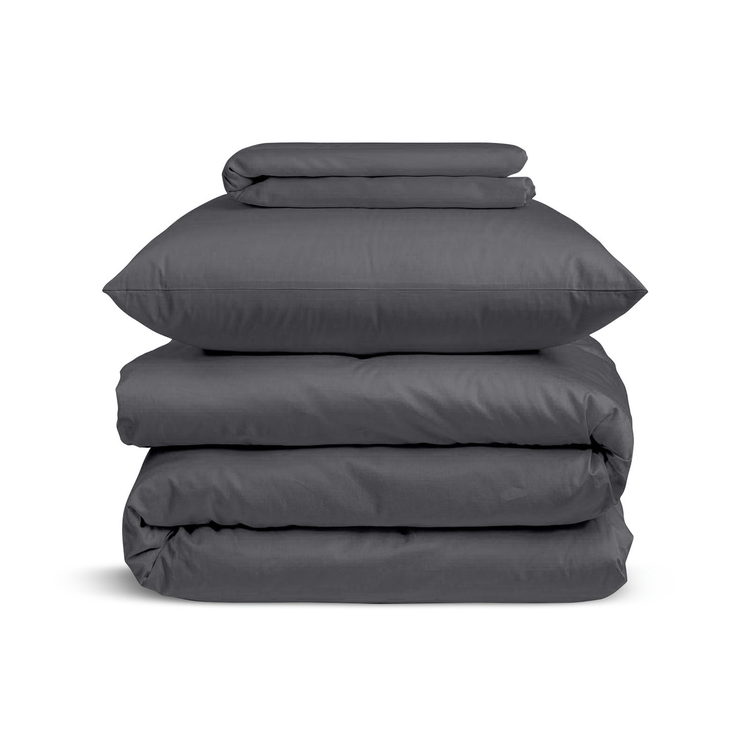 Подростковая постель сатин с простыней на резинке SMOKY Cosas Антрацит 160х220 см