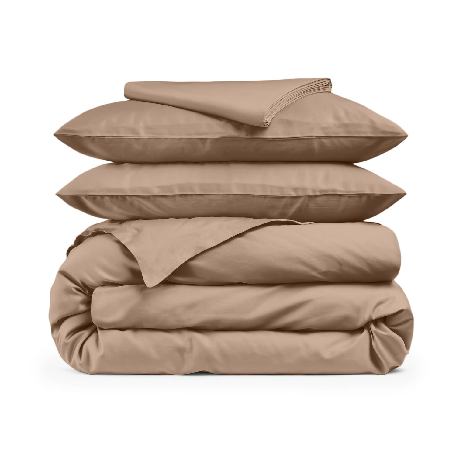 Описание Двуспальная постель сатин с простыней на резинке SAND CS2 Cosas Капучино 180х220 см