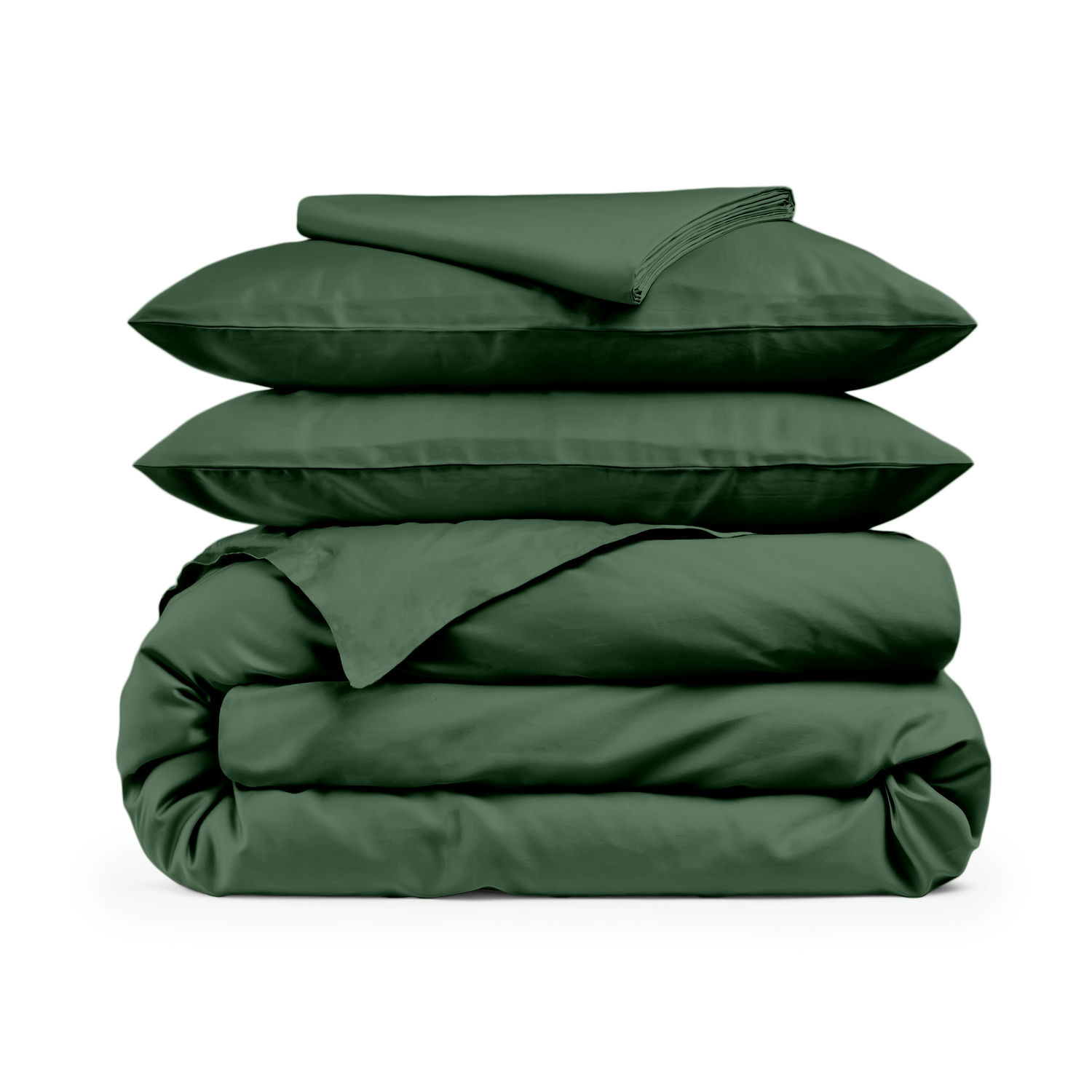 Двуспальная постель сатин с простыней на резинке GREEN Cosas Зеленый 180х220 см