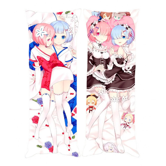 Подушка обнимашка дакимакура Рем / Рам Жизнь в альтернативном мире с нуля 120x40см (21828) Bioworld