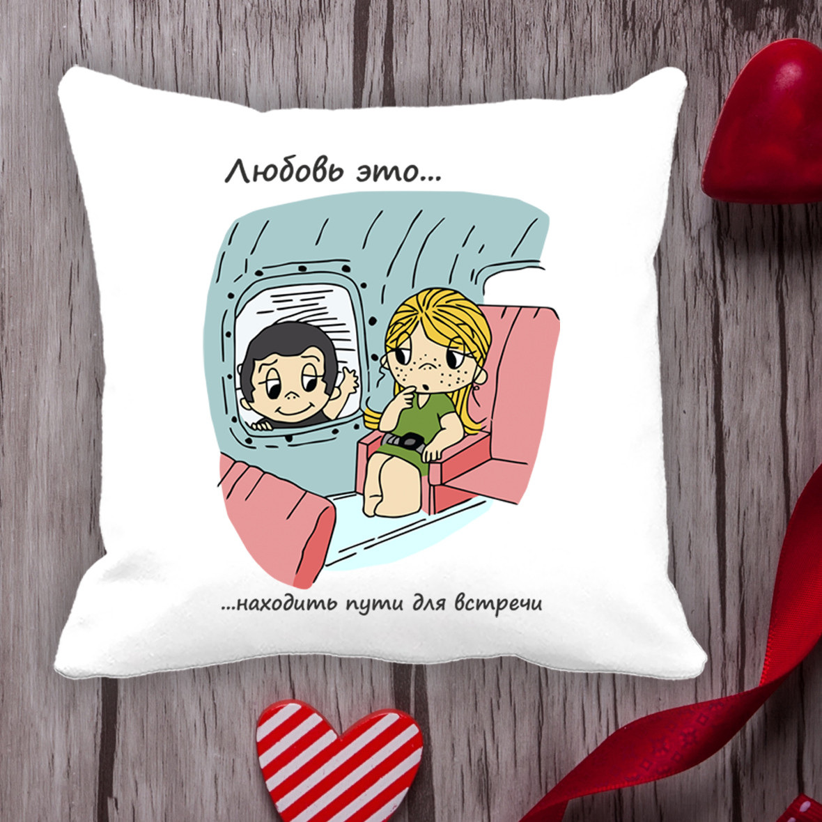 Подушка с принтом Love is "Любовь это ... находить пути для встречи" Белый Кавун П000016