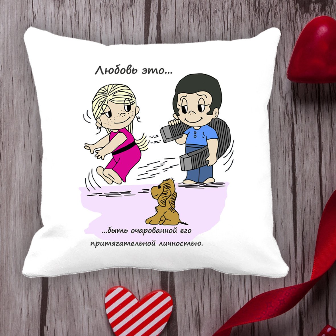 Подушка с принтом Love is "Любовь это ... быть очарованной его притягательной личностью" Белый Кавун П000028