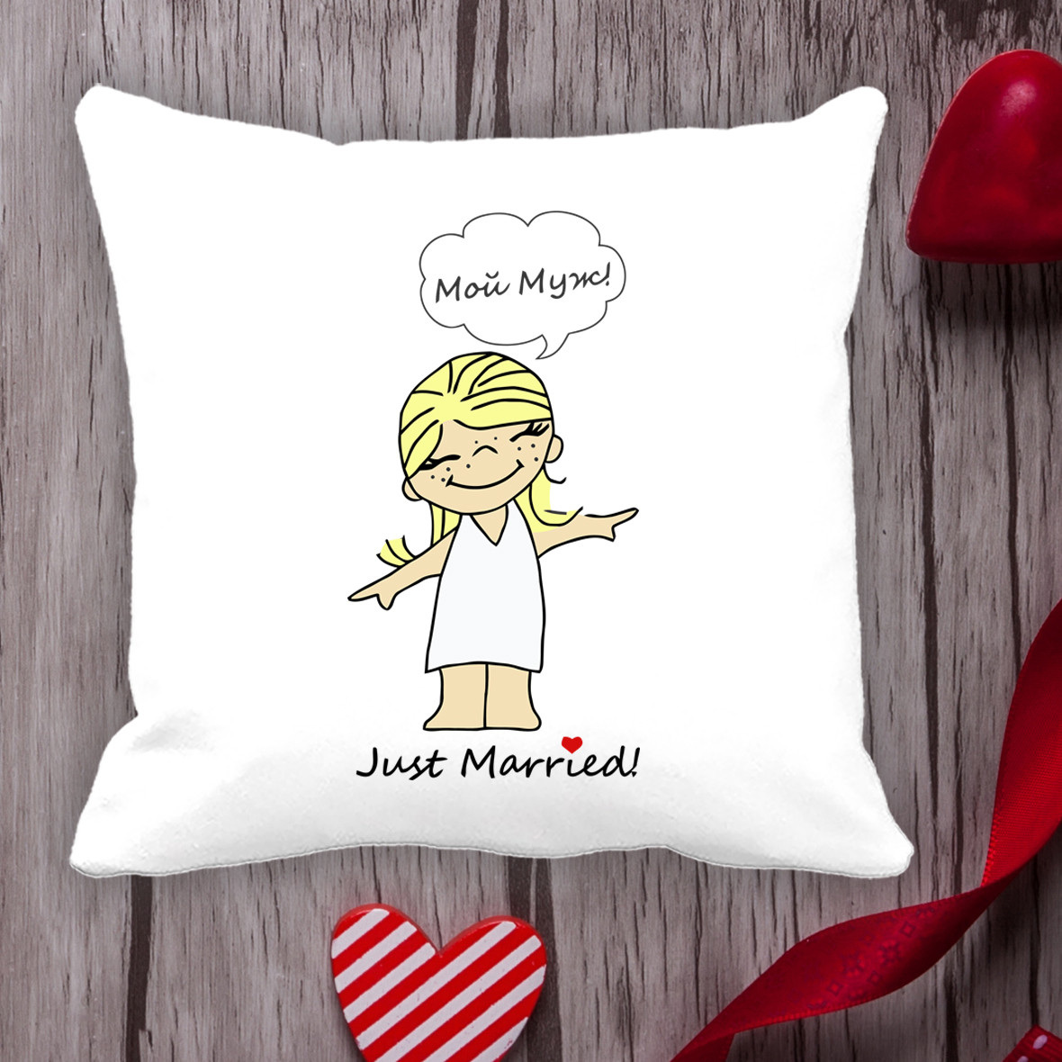 Подушка с принтом Love is "Мой муж" Белый Кавун П000058