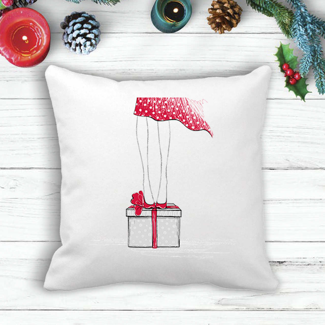Подушка с новогодним принтом Девушка стоит на подарке Белый Кавун П003576