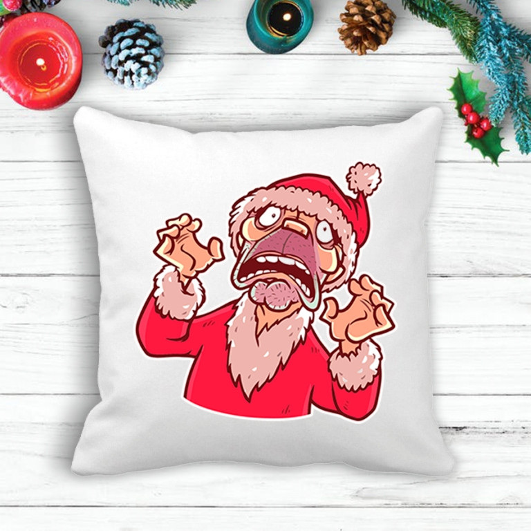 Подушка с новогодним принтом Дед Мороз "Испуг" Белый Кавун П003590