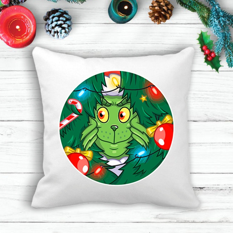 Описание Подушка с новогодним принтом Гринч The Grinch в елках Белый Кавун П003602