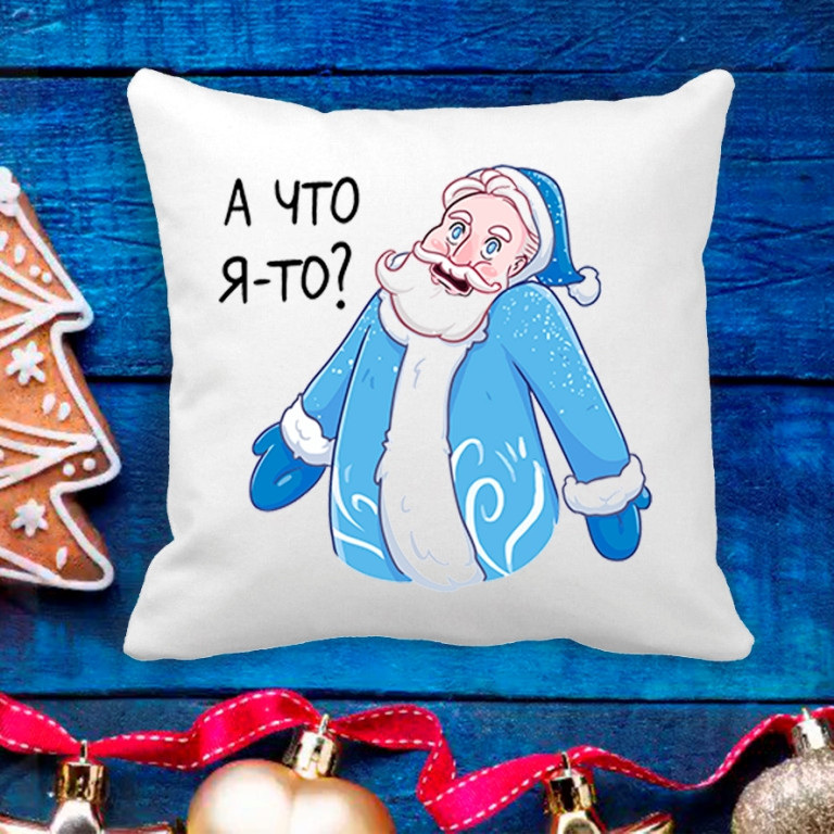 Описание Подушка с новогодним принтом Дед Мороз "А что я-то?" Белый Кавун П003632
